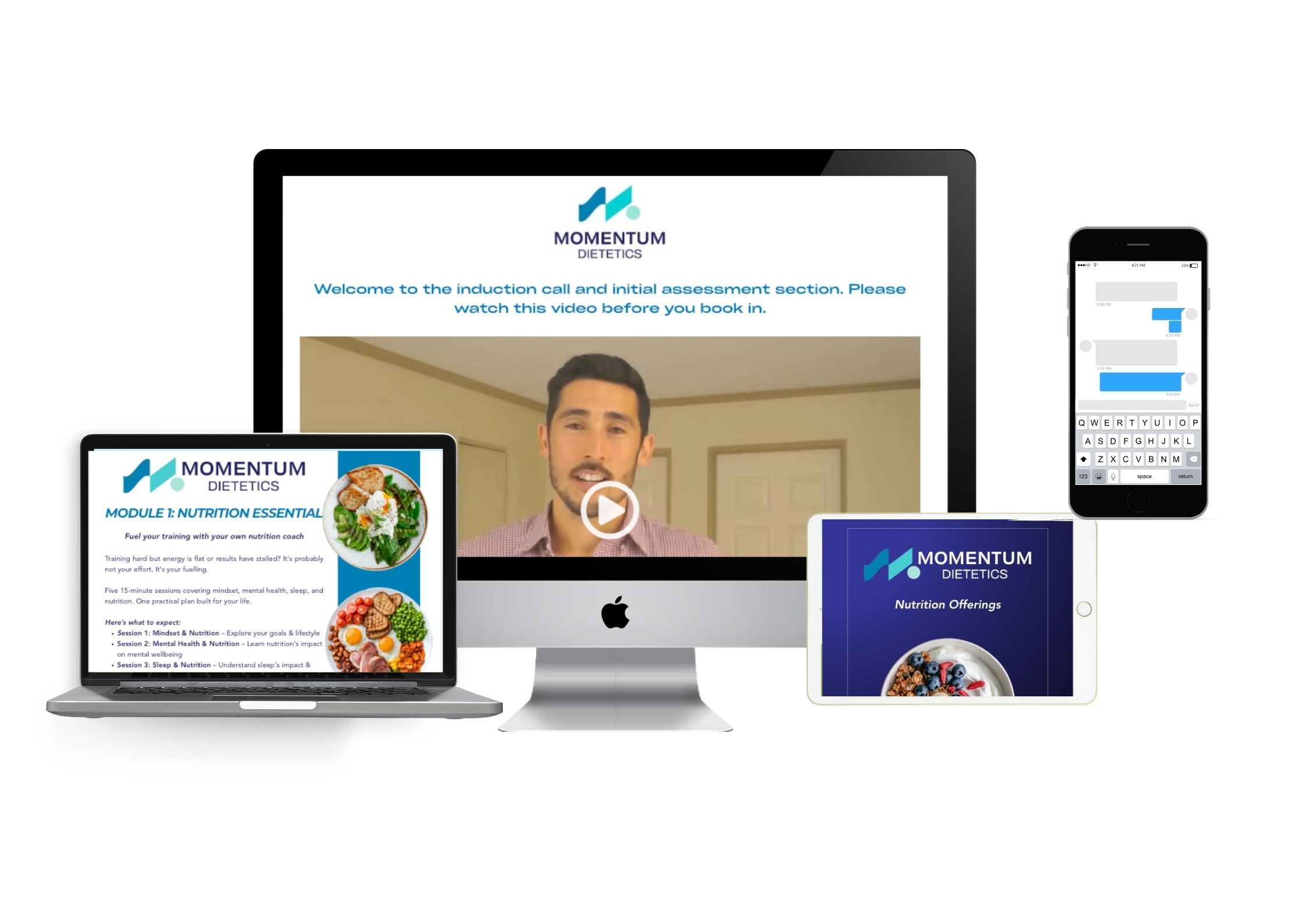 The Momentum Dietetics Optimal Sports Nutrition Program is a fully online 12‑week, evidence‑based coaching experience designed to help athletes fuel, recover and perform at their best — consistently.